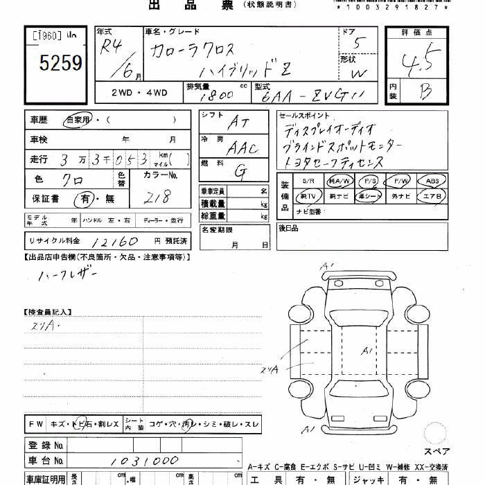 TOYOTA COROLLA CROSS hybrid Z - лот 5259