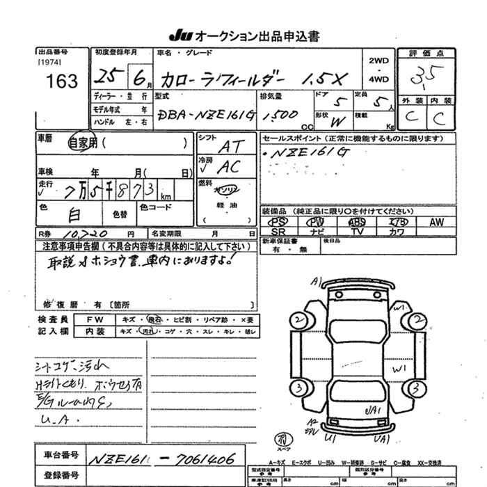 TOYOTA COROLLA FIELDER 1.5X - лот 163