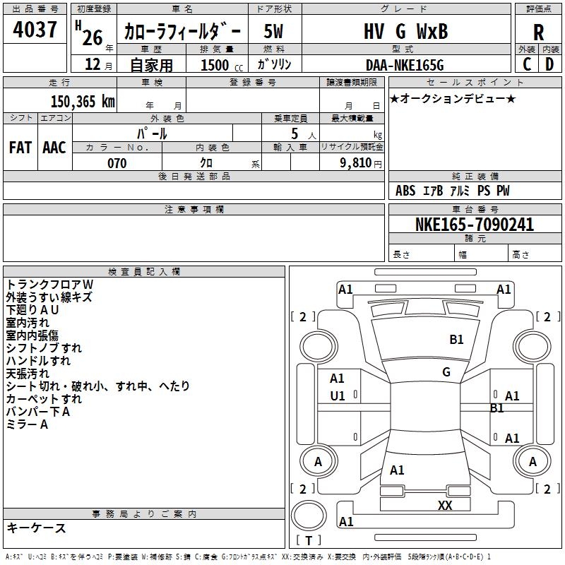 TOYOTA COROLLA FIELDER HV G WxB - лот 4037
