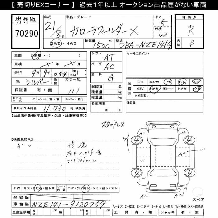 TOYOTA COROLLA FIELDER X - лот 70290