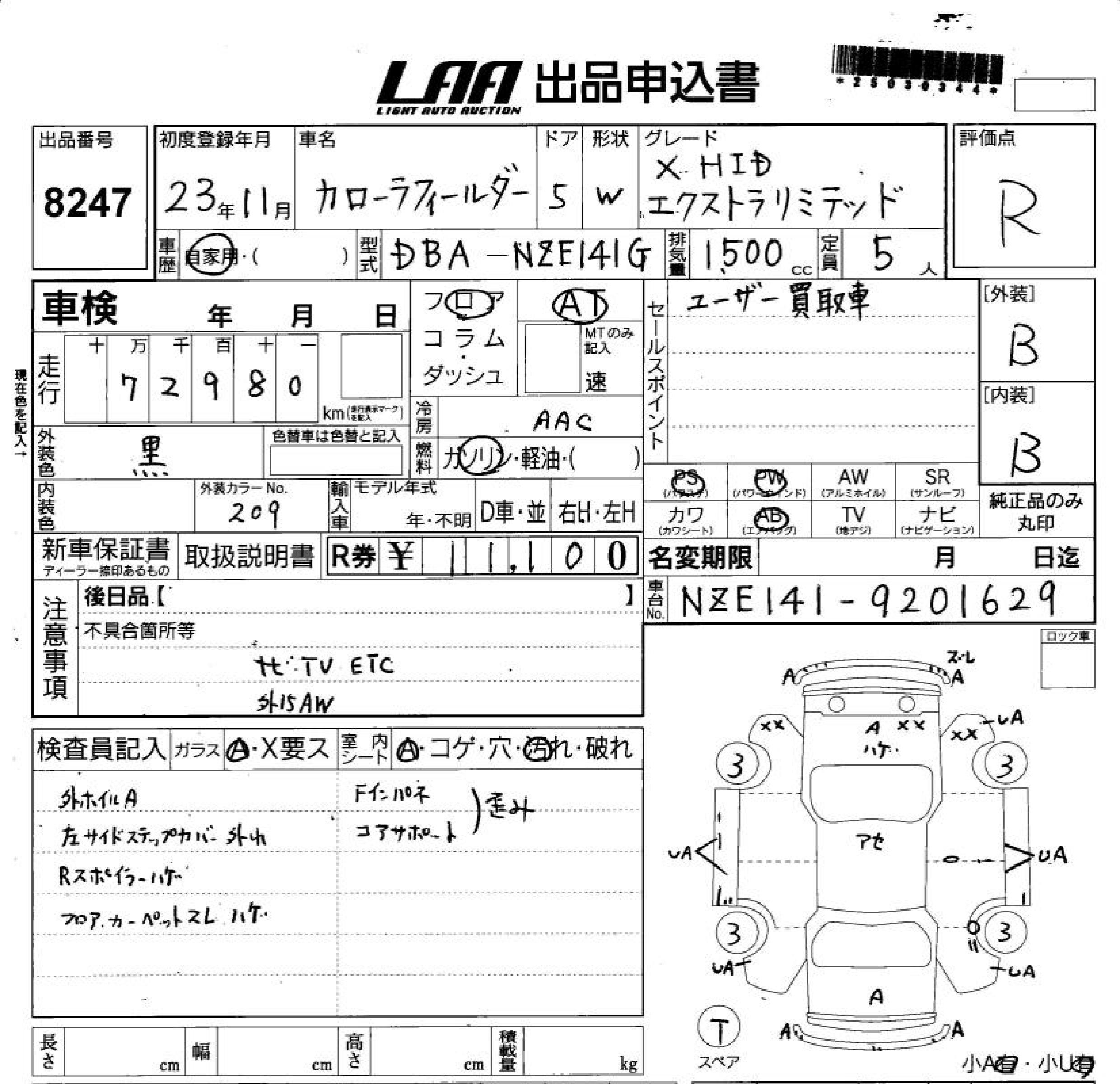 TOYOTA COROLLA FIELDER X HID EXTRA LIMITED - лот 8247