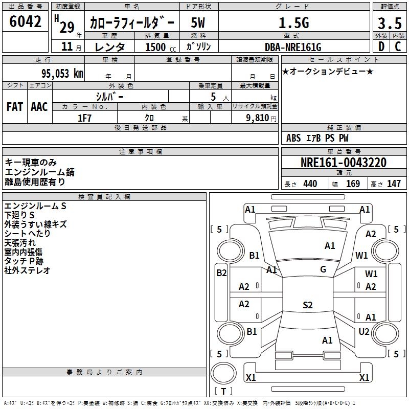 TOYOTA COROLLA FIELDER 1.5G - лот 6042