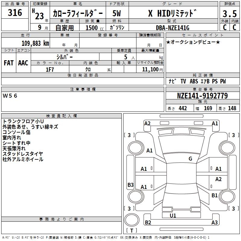 TOYOTA COROLLA FIELDER X HID LIMITED - лот 316
