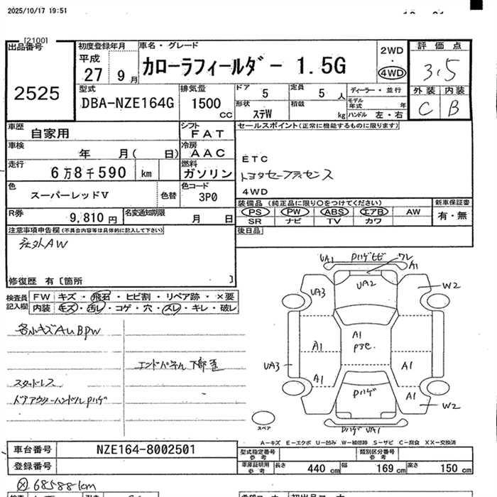 TOYOTA COROLLA FIELDER 4WD 1.5G - лот 2525