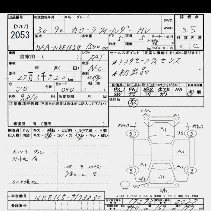 TOYOTA COROLLA FIELDER HYBRID - лот 2053