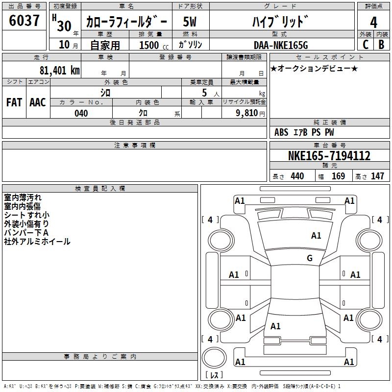 TOYOTA COROLLA FIELDER HYBRID - лот 6037