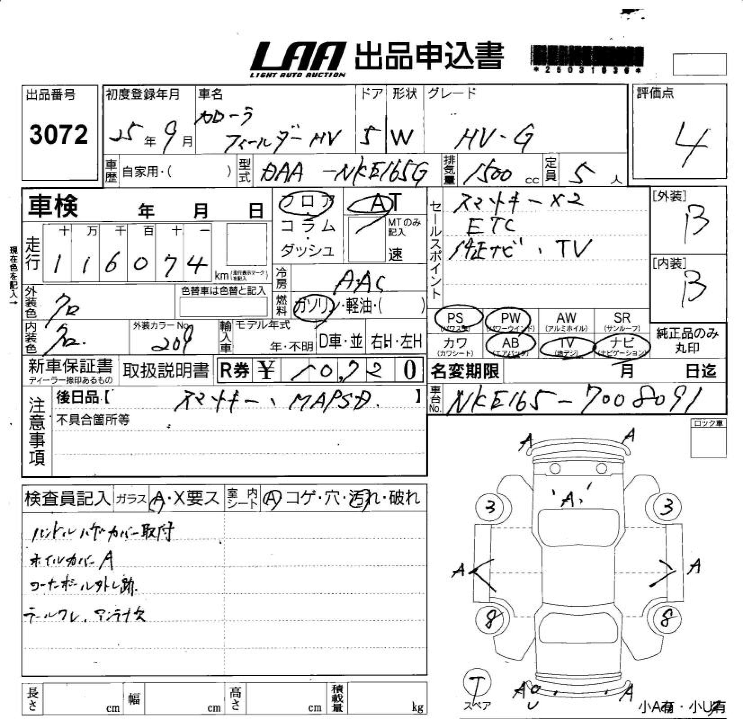 TOYOTA COROLLA FIELDER HYBRID G - лот 3072