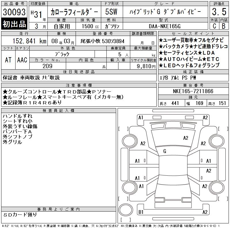TOYOTA COROLLA FIELDER HV G WxB - лот 30093