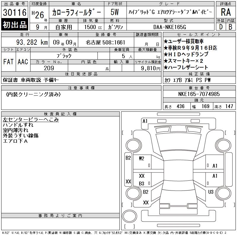 TOYOTA COROLLA FIELDER HV G AERO TOURER *WXB - лот 30116