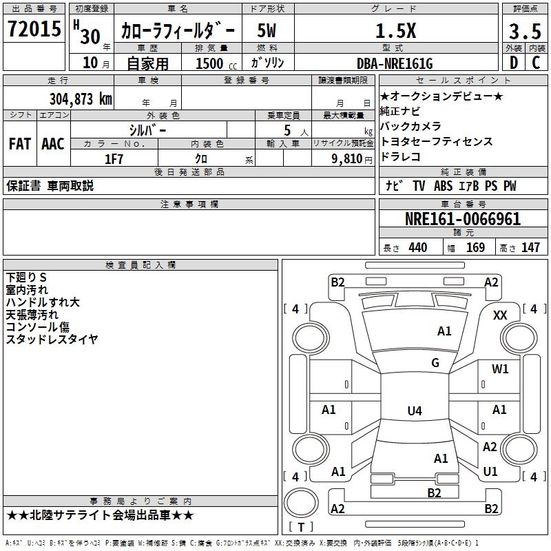 TOYOTA COROLLA FIELDER 1.5X - лот 72015