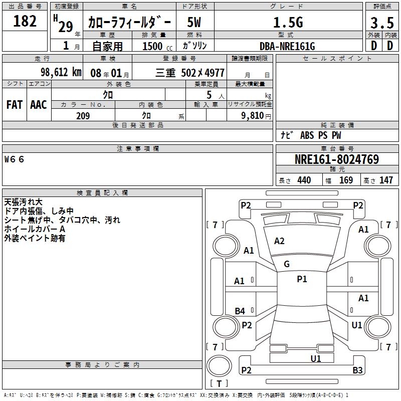 TOYOTA COROLLA FIELDER 1.5G - лот 182