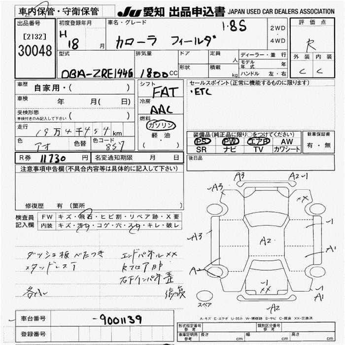 TOYOTA COROLLA FIELDER S - лот 30048