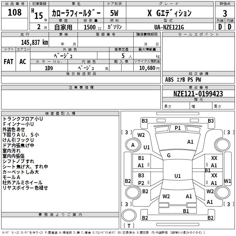 TOYOTA COROLLA FIELDER X G EDITION - лот 108