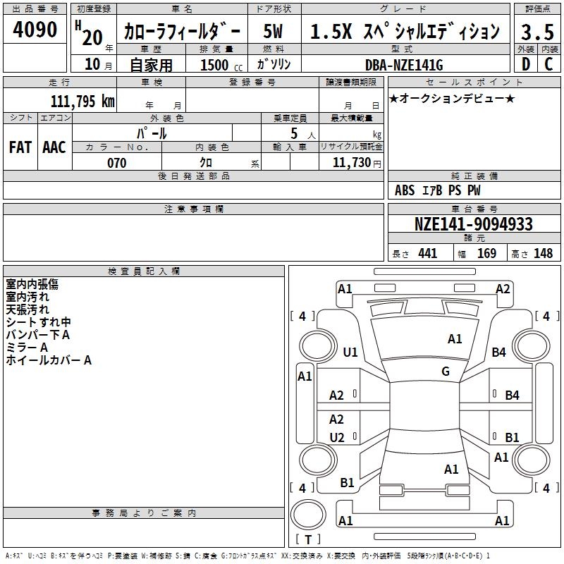 TOYOTA COROLLA FIELDER 1.5X SPECIAL EDITION - лот 4090