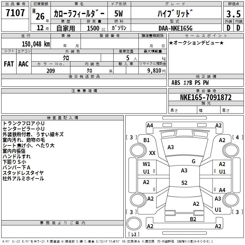 TOYOTA COROLLA FIELDER HYBRID - лот 7107