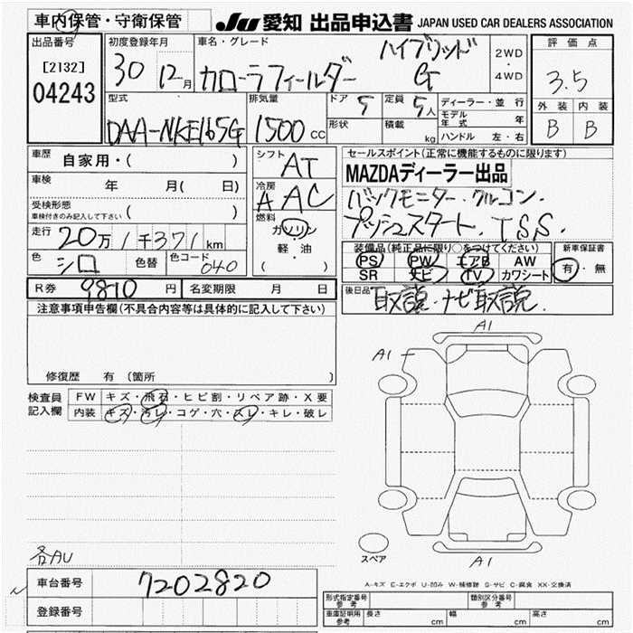 TOYOTA COROLLA FIELDER HYBRID G - лот 4243
