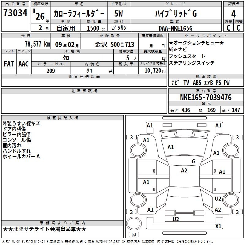 TOYOTA COROLLA FIELDER HYBRID G - лот 73034