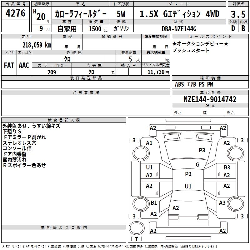 TOYOTA COROLLA FIELDER 1.5X G EDITION 4WD - лот 4276
