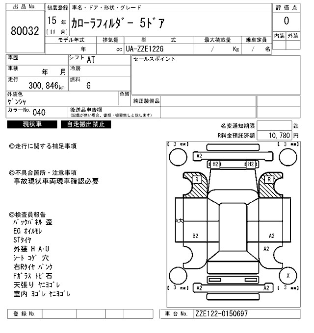 TOYOTA COROLLA FIELDER - лот 80032