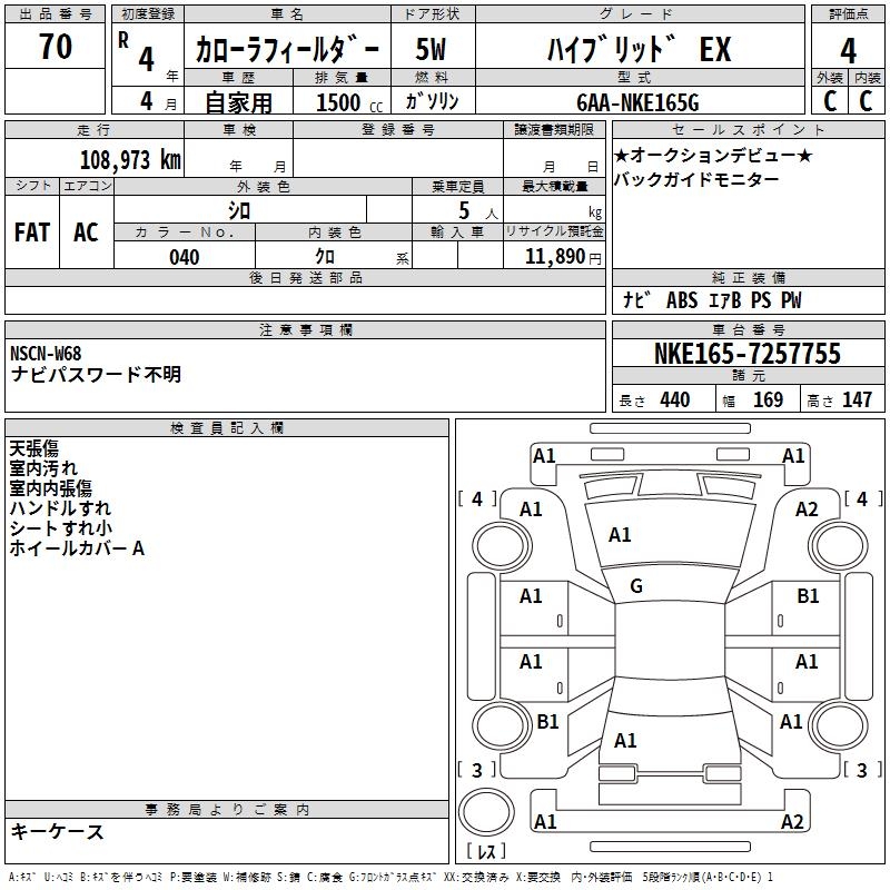 TOYOTA COROLLA FIELDER HYBRID EX - лот 70