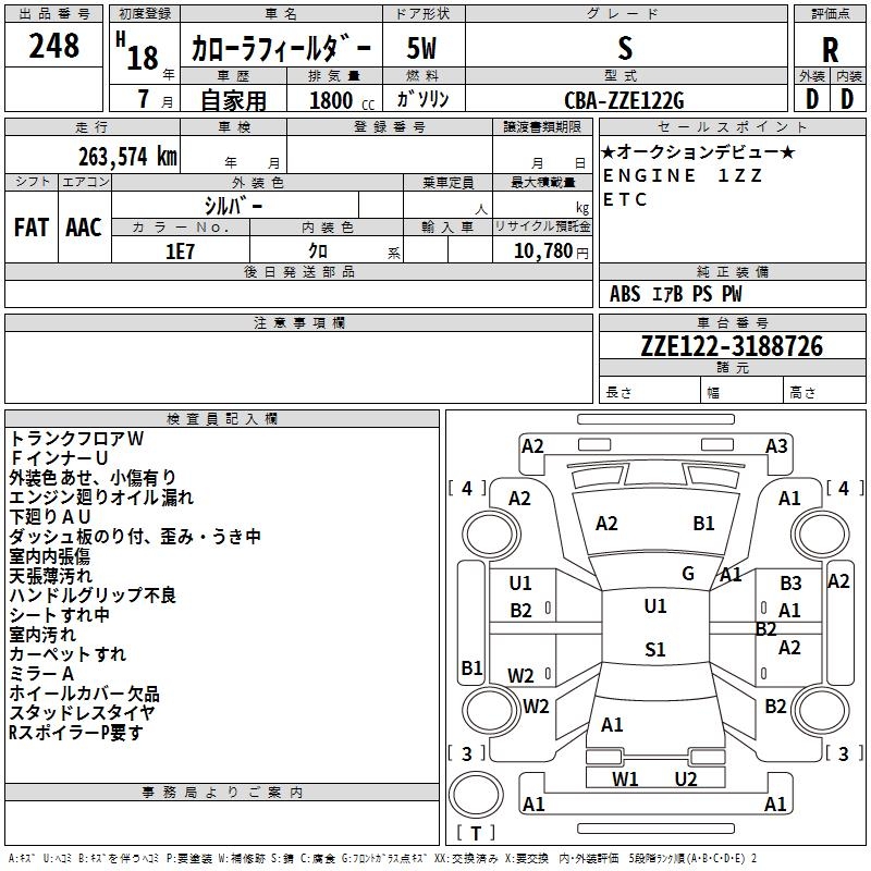 TOYOTA COROLLA FIELDER S - лот 248