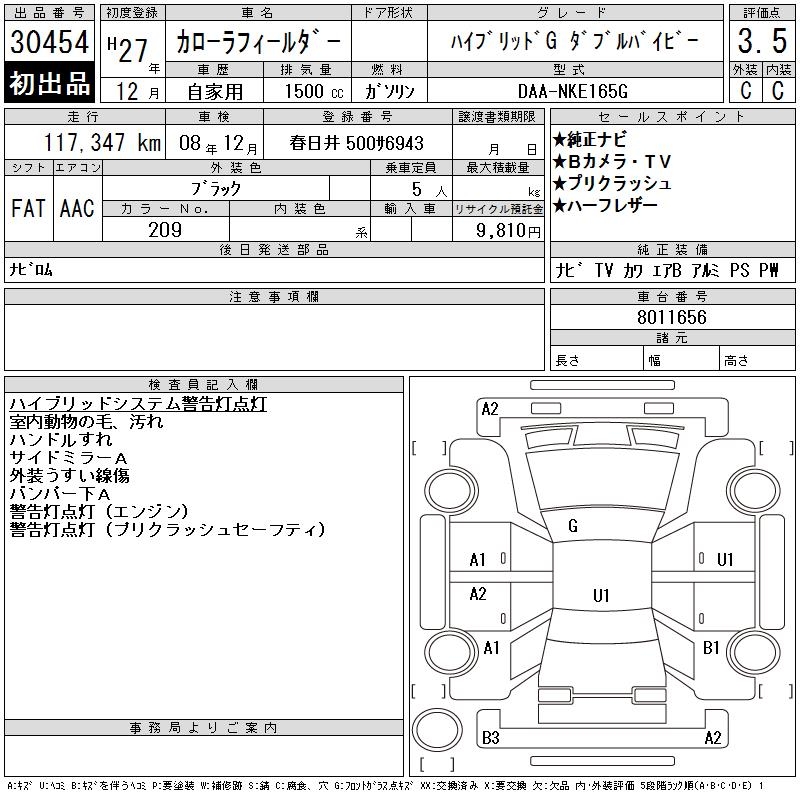 TOYOTA COROLLA FIELDER HV G WxB - лот 30454