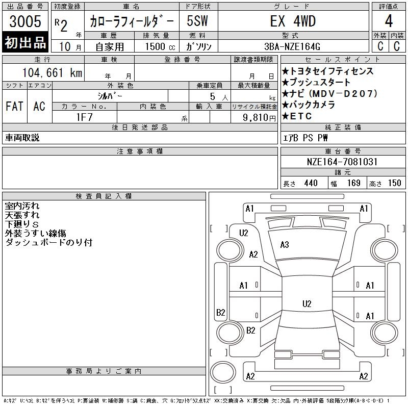 TOYOTA COROLLA FIELDER EX 4WD - лот 3005