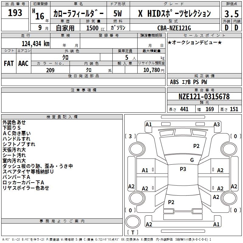 TOYOTA COROLLA FIELDER X HID SPORT SELECTION - лот 193