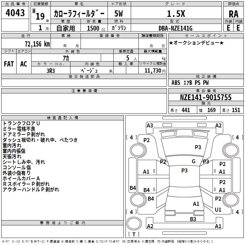 TOYOTA COROLLA FIELDER 1.5X - лот 4043
