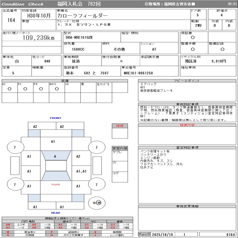 TOYOTA COROLLA FIELDER 1.5X GASOLINE *LPG CAR - лот 164