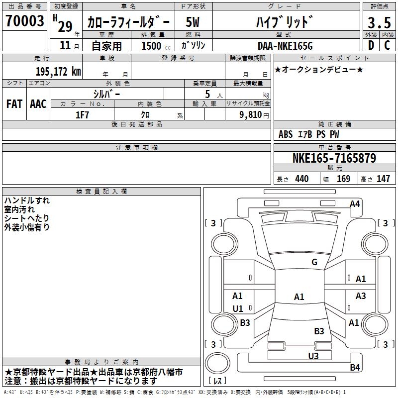 TOYOTA COROLLA FIELDER HYBRID - лот 70003