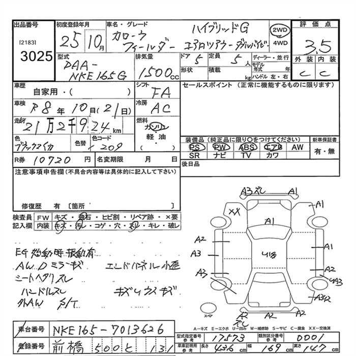 TOYOTA COROLLA FIELDER HYBRID G AERO TOURER WXB - лот 3025