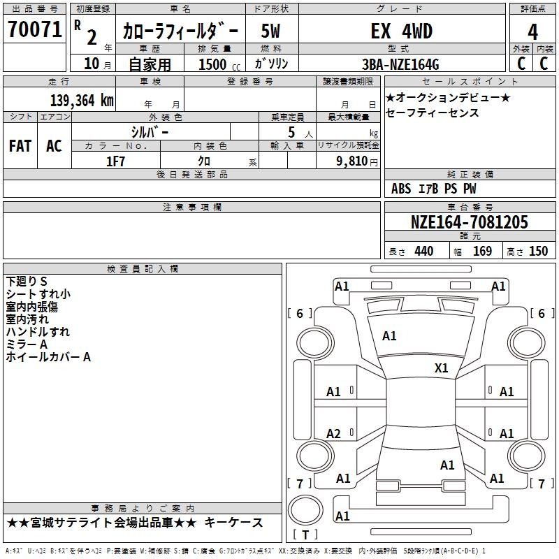 TOYOTA COROLLA FIELDER EX 4WD - лот 70071