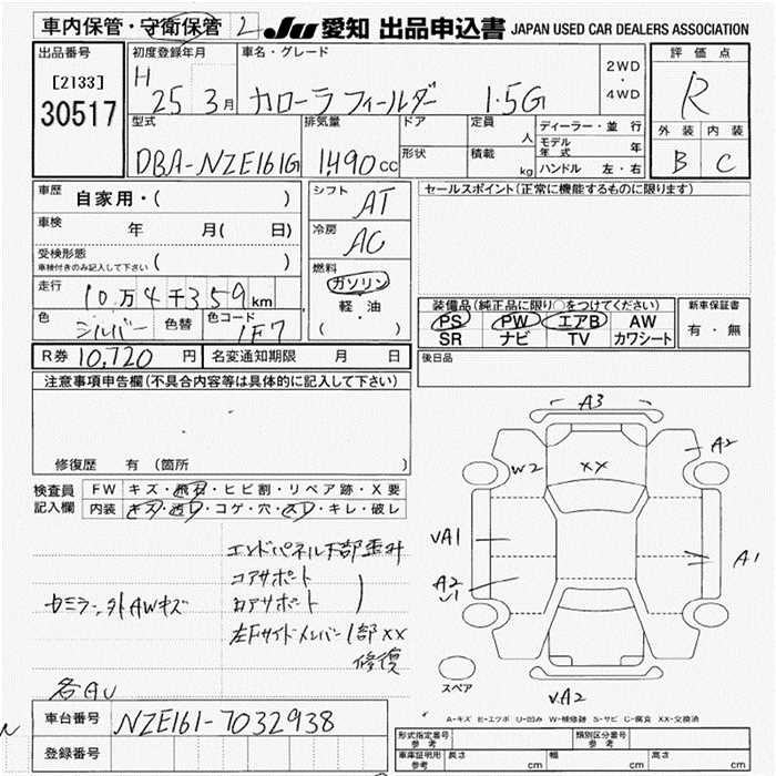 TOYOTA COROLLA FIELDER 1.5G - лот 30517