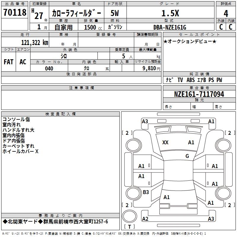 TOYOTA COROLLA FIELDER 1.5X - лот 70118