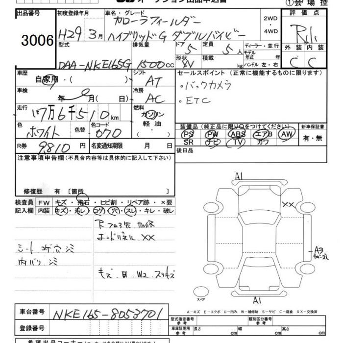 TOYOTA COROLLA FIELDER HYBRID G WXB - лот 3006