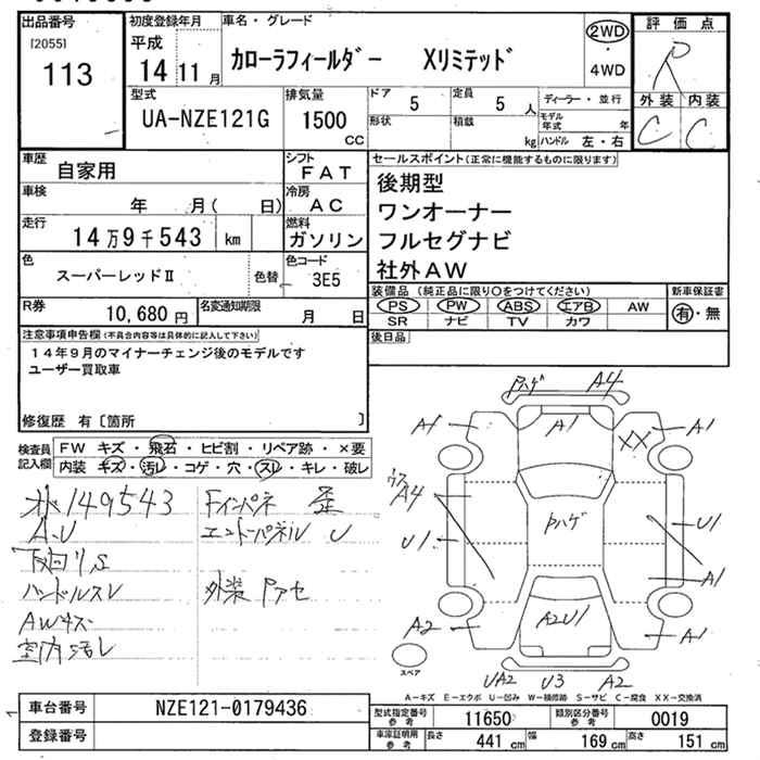 TOYOTA COROLLA FIELDER X LTD - лот 113