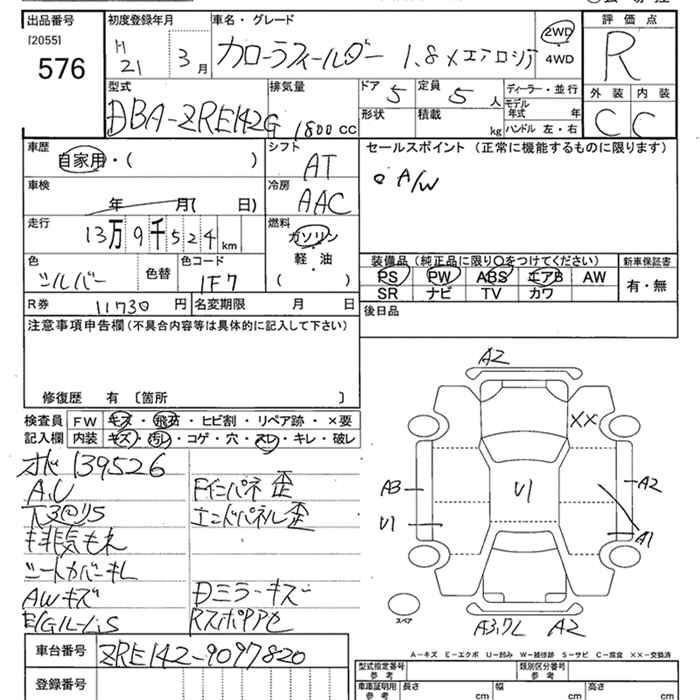 TOYOTA COROLLA FIELDER 1.8X AERO TOURER - лот 576