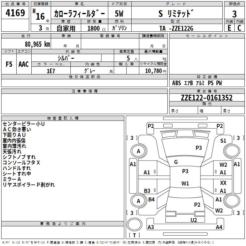 TOYOTA COROLLA FIELDER S LIMITED - лот 4169
