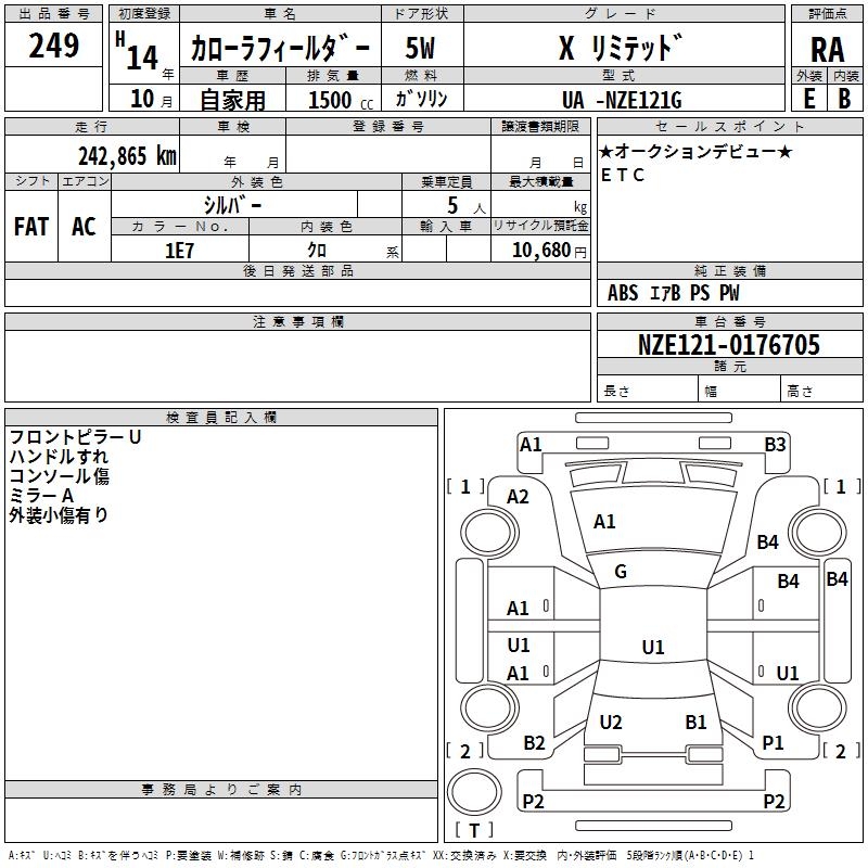 TOYOTA COROLLA FIELDER X LIMITED - лот 249