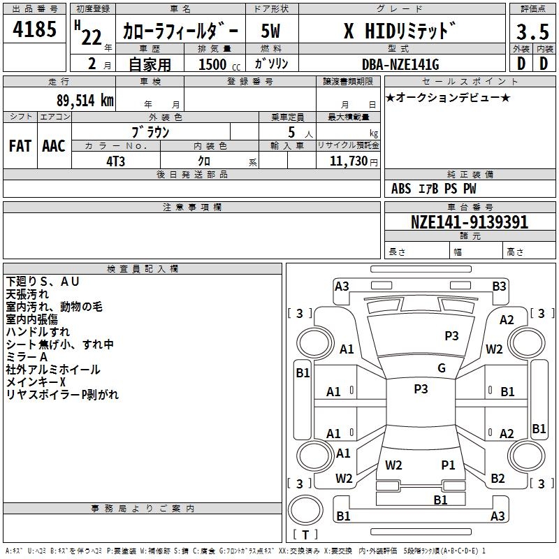 TOYOTA COROLLA FIELDER X HID LIMITED - лот 4185