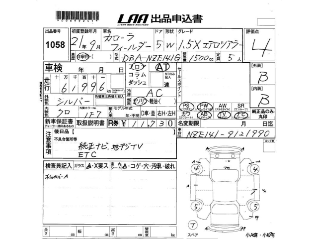 TOYOTA COROLLA FIELDER 1.5X aero Tourer - лот 1058