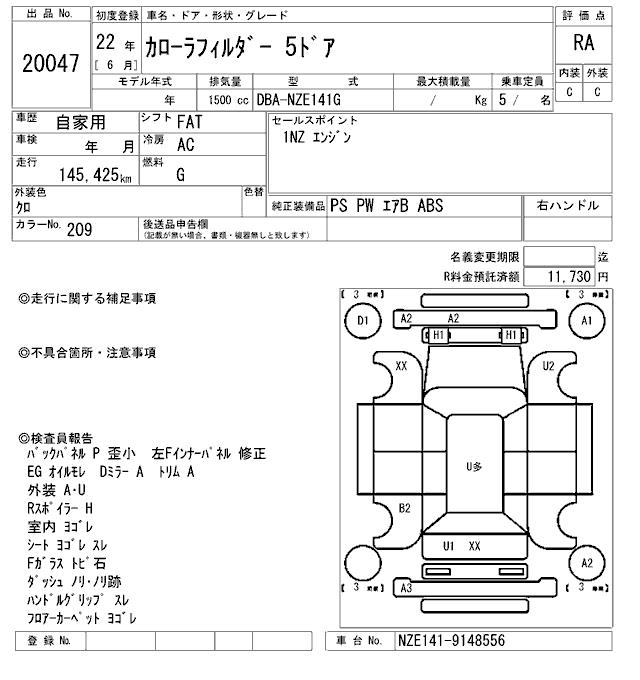 TOYOTA COROLLA FIELDER - лот 20047