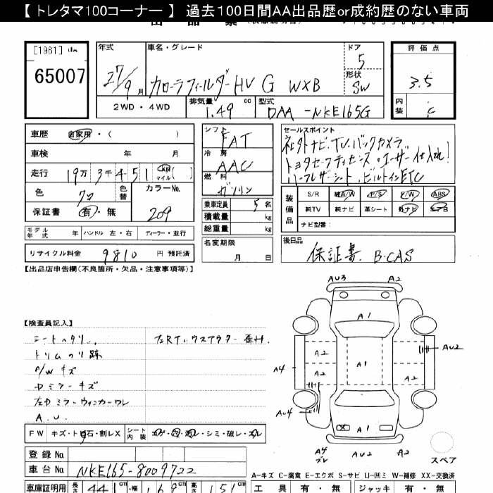 TOYOTA COROLLA FIELDER - лот 65007