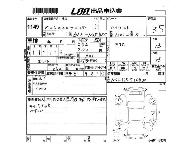 TOYOTA COROLLA FIELDER - лот 1149
