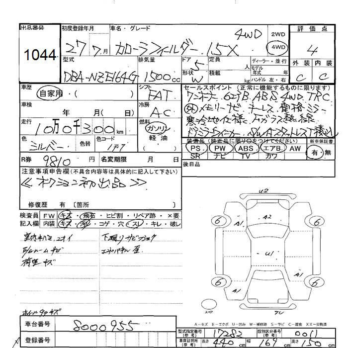 TOYOTA COROLLA FIELDER - лот 1044