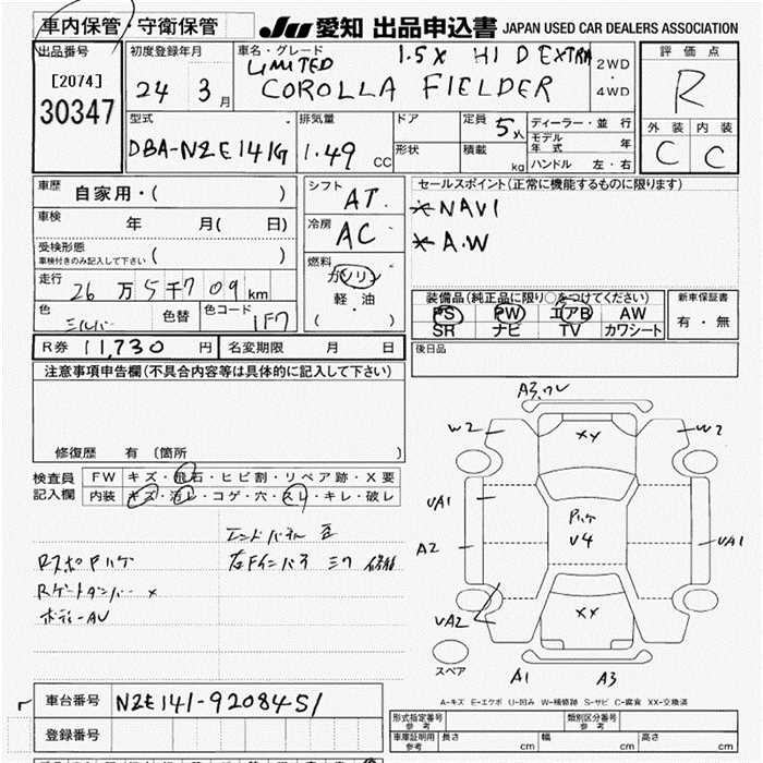 TOYOTA COROLLA FIELDER - лот 30347