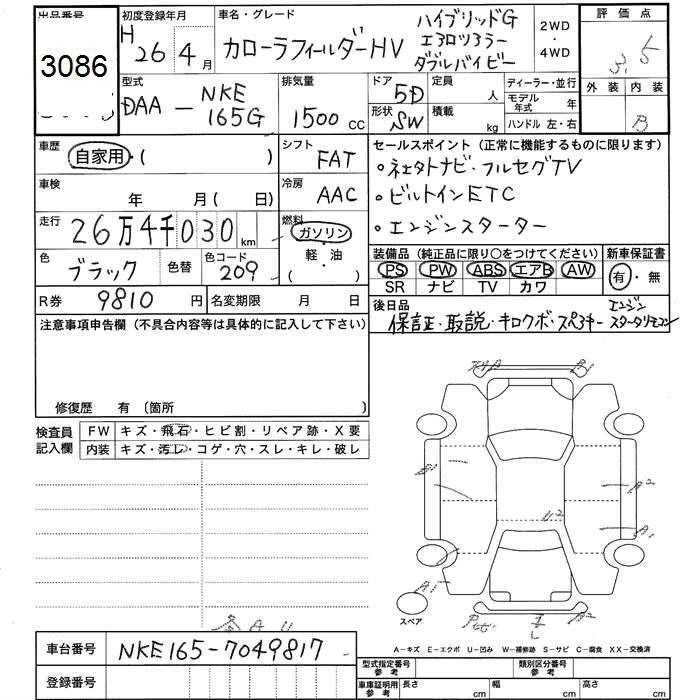 TOYOTA COROLLA FIELDER - лот 3086