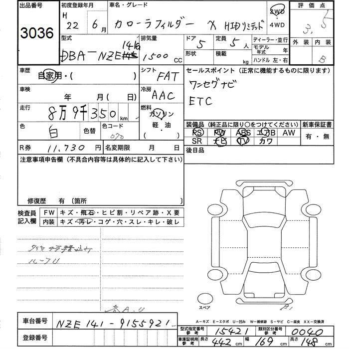 TOYOTA COROLLA FIELDER - лот 3036