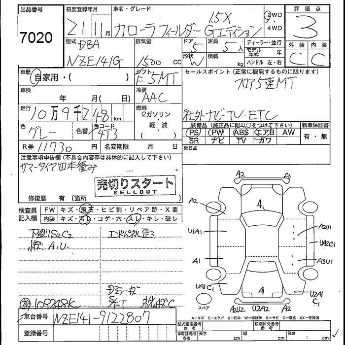 TOYOTA COROLLA FIELDER - лот 7020